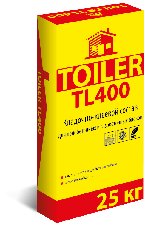 Кладочно-клеевой состав TOILER TL 400 предназначен для тонкослойной кладки пазовых и беспазовых блоков. Предотвращает образование “мостиков холода” в местах швов между плитами и блоками. Это достигается минимизацией толщины шва (2,0 - 3,5мм при правильной геометрии блока).