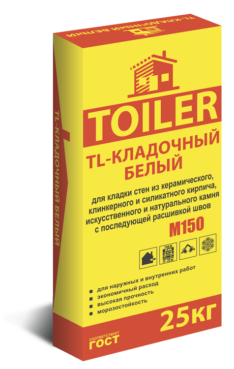 TOILER TL-КЛАДОЧНЫЙ БЕЛЫЙ применяется для кладки стен из керамического, клинкерного и силикатного кирпича, искусственного и натурального камня с последующей расшивкой швов.